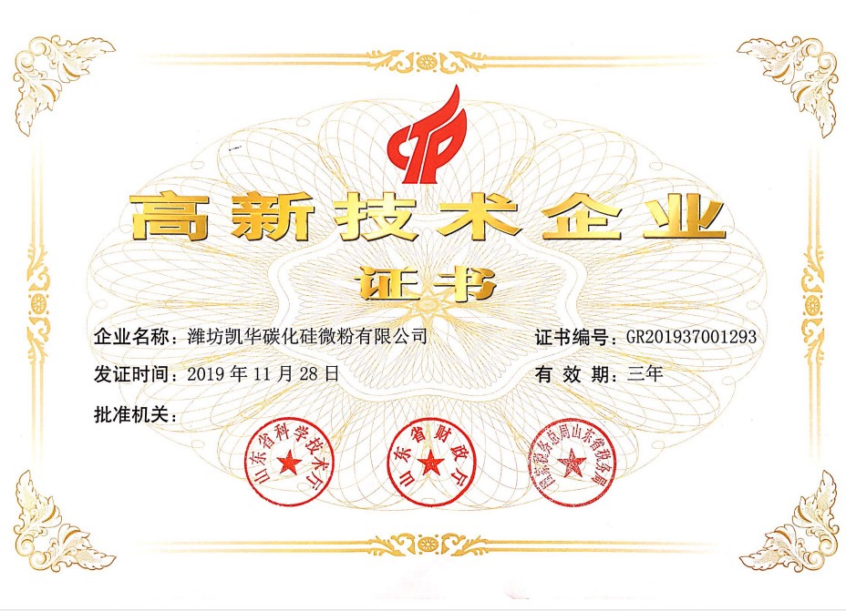 濰坊凱華碳化硅微粉有限公司成立于2002年,國(guó)家高新技術(shù)企業(yè),公司占地40畝,標(biāo)準(zhǔn)廠房19000平方,辦公樓、研發(fā)處2000平方,年生產(chǎn)能力3萬(wàn)噸。一直從事陶瓷級(jí)微粉的生產(chǎn)銷售,所生產(chǎn)的超細(xì)碳化硅微粉具有純度高、粒形好、穩(wěn)定性強(qiáng)等特點(diǎn),主要用于反應(yīng)燒結(jié)、無壓燒結(jié)、硅碳棒新工藝、重結(jié)晶燒結(jié)、蜂窩陶瓷、機(jī)車制動(dòng)裝置、研磨拋光、金屬防腐表面噴涂、納米隔熱保溫材料等領(lǐng)域。標(biāo)準(zhǔn)產(chǎn)品有:F240、F1200、W40、W28、W20、W14、W10、W7、W5、W3.5、 W2.5、W2、W1.5、W0.5、5S、D3E、100F、RS07、RS100及整形高密度系列綠碳化硅微粉......